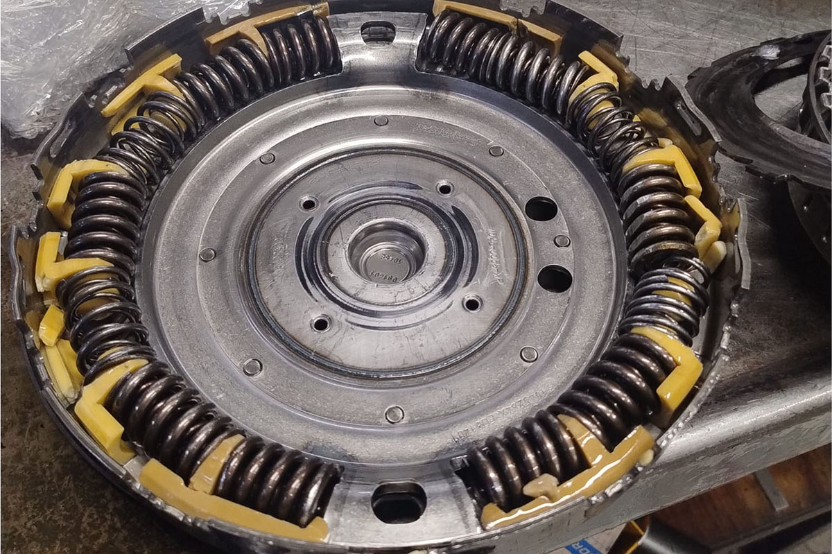 A common issue with this transmission is the failure of the plastic components in the clutch damper. When this happens, the damper springs and cover begin to wear, releasing metal debris into the transmission and valve body. Often, when the transmission fails, fault code P2714 (Pressure Control Solenoid 'D' Performance/Stuck Off) appears. Some gears may become unavailable, or the vehicle may not move at all.