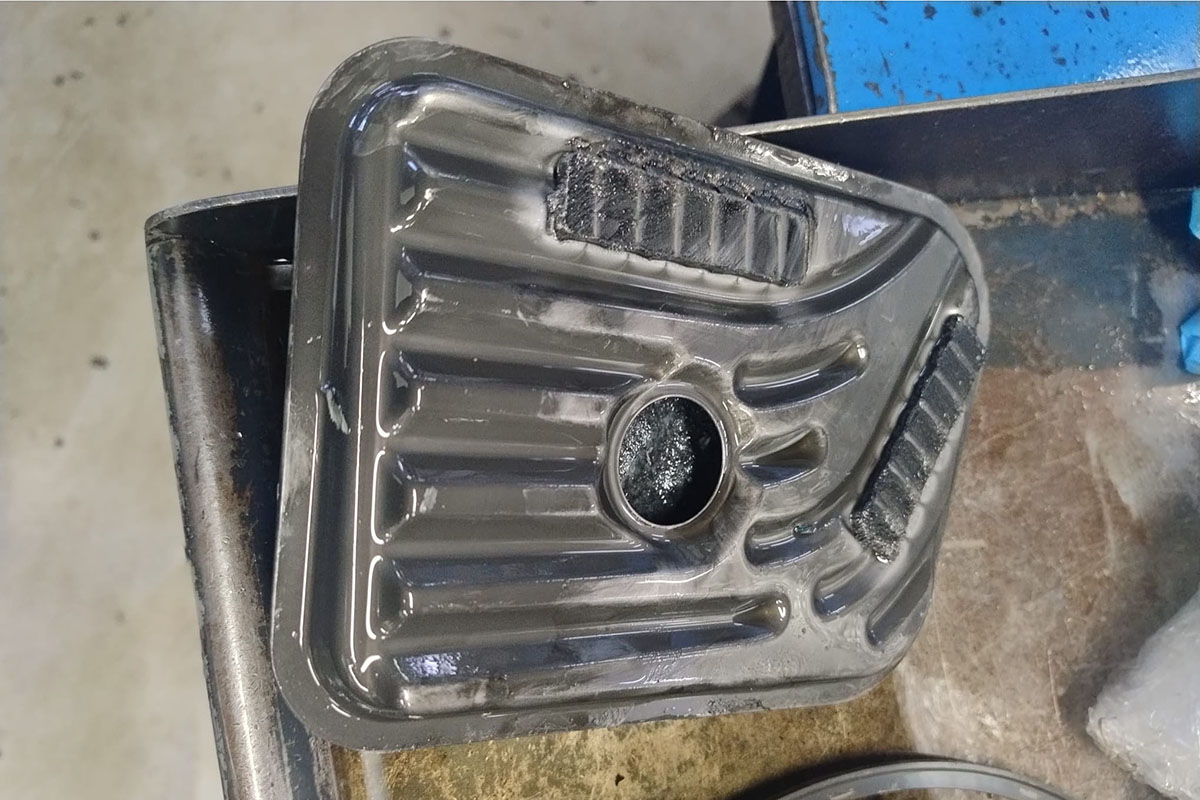 Image 5: This transmission had been factory-refurbished by Ford and was in use for less than a year. In that time, the internal filter had already deteriorated significantly.